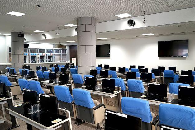 フロア中央付近にはソファなどもありくつろいで競輪を楽しむことも可能です。喫煙ルーム2箇所。コーヒー、お茶は無料です。